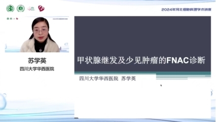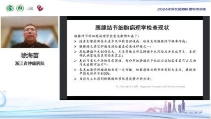 “针吸细胞学专场”由毕学杰教授主持,中国医学科学院肿瘤医院张智慧教授阐述了头颈部针吸的基本原理和操作流程,并深入探讨了其在头颈部病变诊断中的必要性,介绍了头颈部常见的病变;四川大学华西医院苏学英教授通过详细的文献研究和丰富的临床病例,深入解析了甲状腺常见继发肿瘤以及一些少见的继发肿瘤;浙江省肿瘤医院徐海苗教授深入分析了超声引导下胰腺结节细针穿刺的临床价值,展示了胰腺导管癌各种常见及罕见类型的细胞形态学特征,并探讨了其在鉴别诊断中的挑战与难点;首都医科大学附属北京朝阳医院金木兰教授介绍了甲状腺乳头状癌不同亚型的细针穿刺细胞形态学特点,并通过结合TBS系统及临床实践揭示了细胞排列和核特征等细胞学特点在PTC诊断中的重要价值。