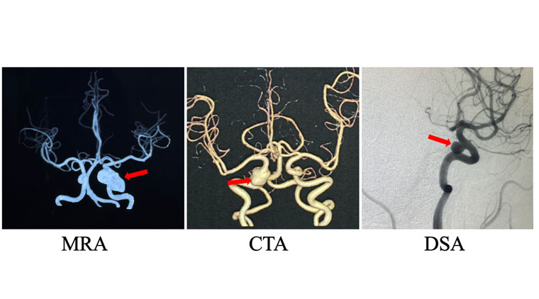 动脉瘤的诊断主要依靠临床影像学技术,包括头颅核磁TOF- MRA序列CT血管造影(CTA数字减影血管造影(DSA
