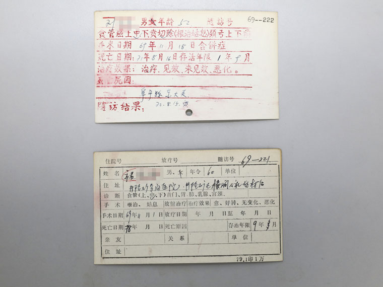 病案室便建立了食管癌和贲门癌出院患者常规随访体系,病案室承担常规随访工作,现保存最早的随访卡片可追溯到1957年。果冻传媒