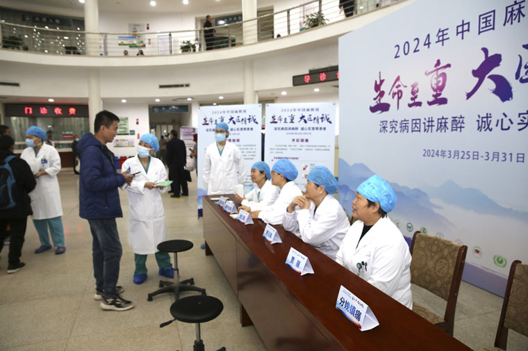 3月25-31日是第八个“中国麻醉周”,今年的主题是“生命至重,大医精诚——深究病因讲麻醉,诚心实意帮患者”。为让更多的人关注麻醉、了解麻醉、认识麻醉,提高对麻醉学科的认知度,在医院党委和各部门的支持下,麻醉科在本部及东院门诊大厅开展了“中国麻醉周大型公益义诊”等系列活动。副院长何宏涛,门诊部主任安波、医务处处长李杰和护理部副主任刘风侠等出席。