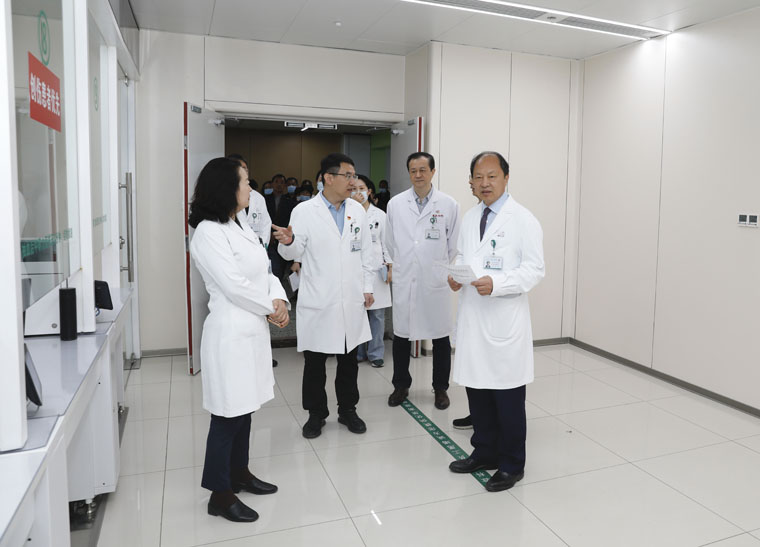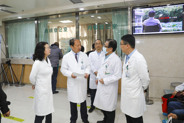 单书记一行先后查看了门诊、住院收费处、医保咨询处、急诊收费处以及CT磁共振科、检验科、超声科、内镜科登记预约窗口的现场情况,针对服务环境、服务流程、服务技能、服务效率、管理水平等方面进行仔细询问。他指出,医疗服务窗口的服务质量,与患者的就诊体验密切相关,要打造更加舒适、便捷的服务窗口,努力做到“信息多跑路、患者少跑路”,进一步推动“一站式服务”扎实落地;要建立保障窗口服务质量的长效机制,确保“三优化三提升”各项要求得到长效落实;各部门负责人要不断优化服务流程,提高窗口服务意识和能力,切实提升患者就医体验。