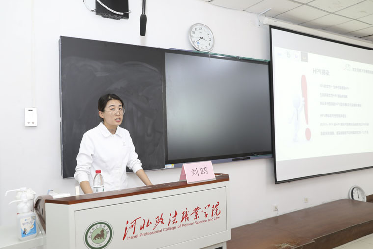 随后,刘昭副护士长针对女性宫颈癌筛查与防治进行了科普宣讲,涵盖宫颈癌的三级防控体系、主要致病因素、HPV感染及疫苗接种、宫颈癌早筛等内容,鼓励女同学根据个体情况尽早接种HPV疫苗,增强防癌意识,远离宫颈癌。