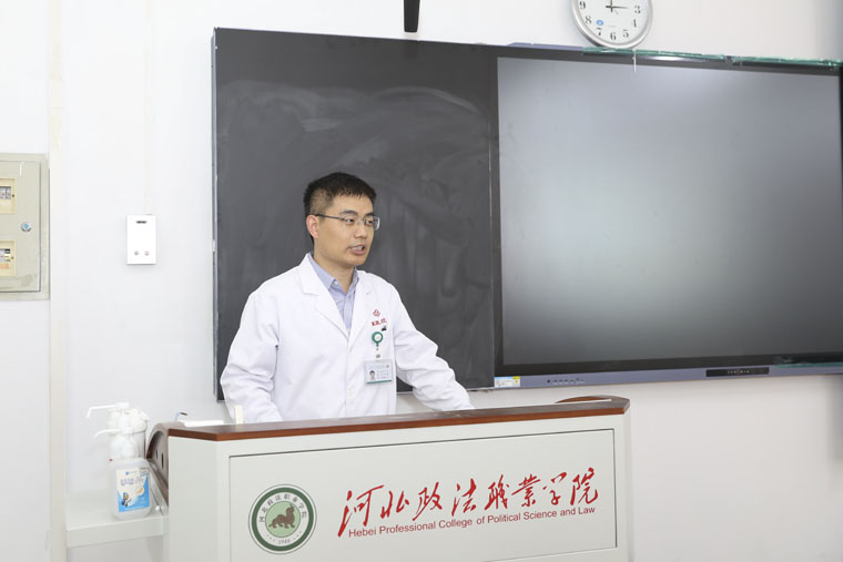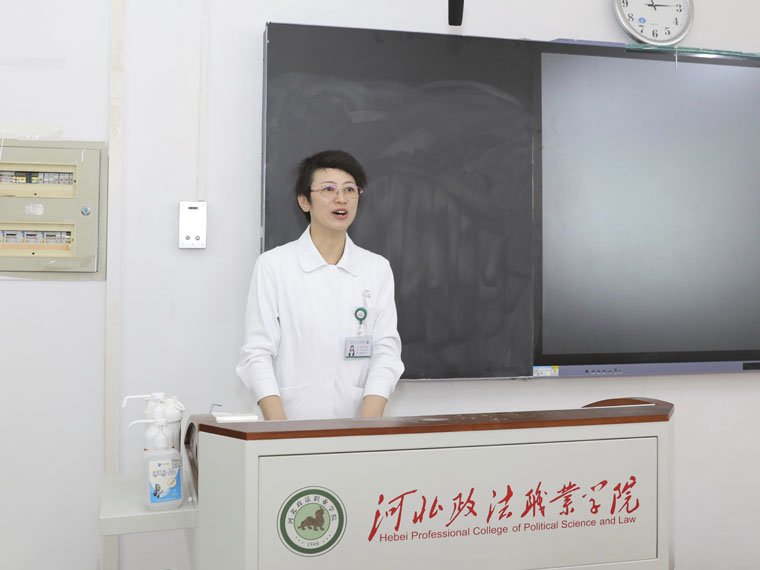 护理部组织食管癌整合护理专委会副主委、护理部副主任梁军利,疼痛和麻醉专委会副主委、护理部副主任刘风侠,科普专委会副主委、外三科许夕霞主任护师,外科专委会主委、胸外科护士长赵俊敏,放疗及罕见病专委会副主委、放疗科护士长赵静,胃肠外科专委会副主委、外二科副主任牛文博,伤口造口专委会委员、外二科护士长张雪娜,妇科专委会委员、妇科副护士长刘昭和急诊专委会委员张宁主管护师等11位医疗护理专家,走进河北政法职业学院,举行“CACA指南进校园”科普义诊活动。