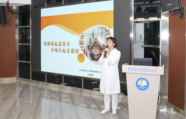 随后,眼科杨丽曼以“爱眼、护眼进校园”为题进行专题讲解,对如何科学用眼、远离近视做了生动形象的演示。儿科才越越围绕“晚睡晚起危害多,早睡早起身体好”的话题,以直观的数据倡导大家养成良好的生活习惯。在提问互动环节,孩子们积极踊跃提问,护理专家们都予以耐心讲解。