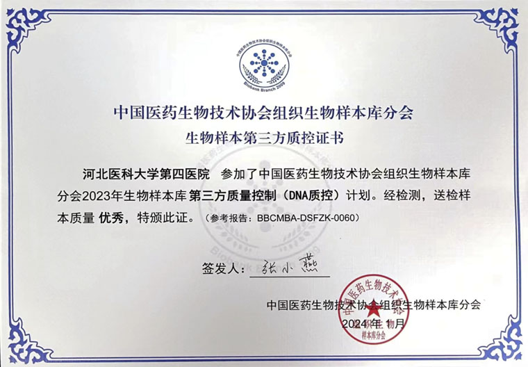 生物标本库以优异的成绩通过了在全国各机构生物样本库开展的“生物样本第三方质控项目”,是目前河北省唯一一家参加评定并通过的生物样本库,其中DNA质控结果为优秀。该项目由中国医药生物技术协会组织生物样本库分会(BBCMBA)开展。此次评定结果进一步体现了果冻传媒
