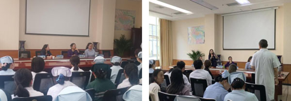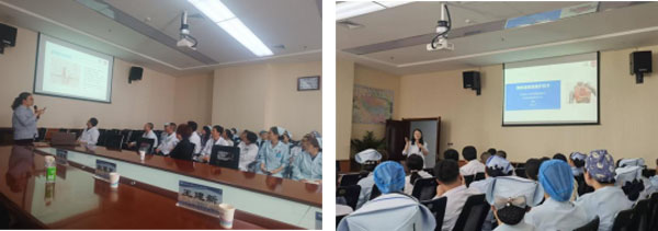 乳腺中心耿翠芝教授、王建新护士长带领团队赴井陉县医院开展“植入式静脉输液港推广应用、恶性肿瘤患者静脉血管通路建立与维护”适宜卫生技术推广项目,为当地县医院的医护人员开展培训工作。