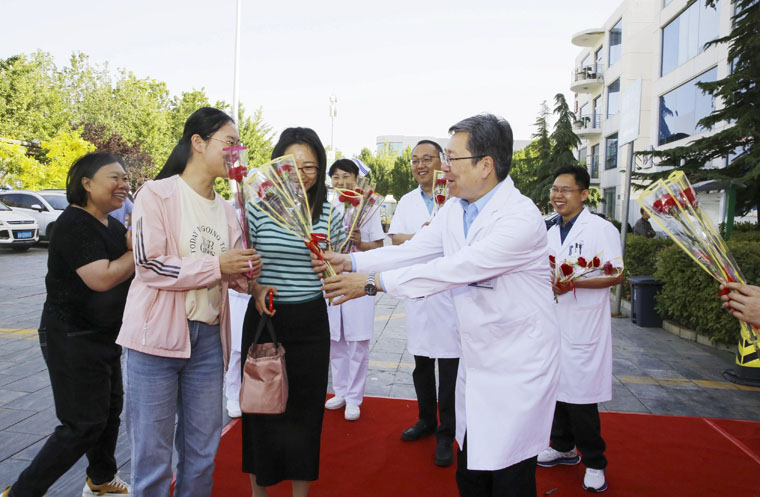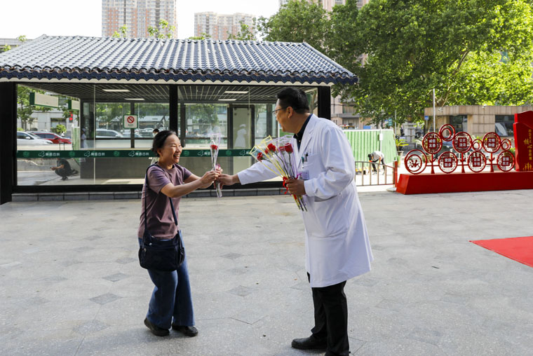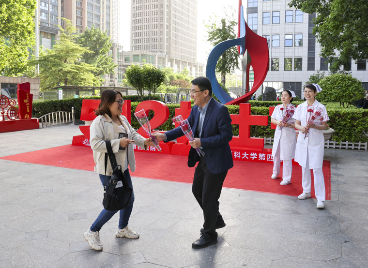 党委书记单保恩,副院长何宏涛、彭利、马景涛和护理部成员分别在两院区前庭广场,等待每一位在晨露微光中奔赴工作岗位的护理兄弟姐妹,向他(她)们献上一支美丽的康乃馨,亲切地道一声:“你辛苦啦!”大家纷纷表示,谢谢院领导和同事们的关心、鼓励,将认真履行关爱生命、守护健康的专业职责,为持续提升广大患者就医体验,助推医院实现高质量发展而不懈奋斗。