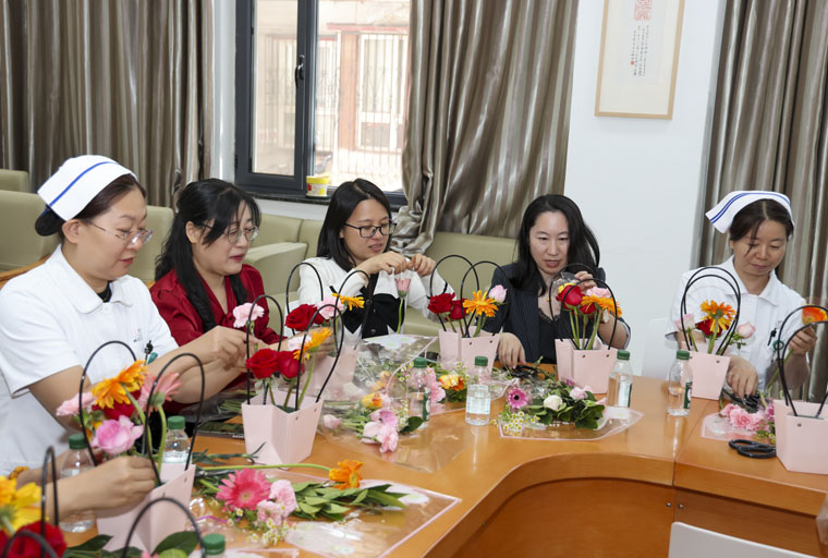 5月11日下午,护理部组织两院区部分护士长举办了“艺术插花DIY”活动。插花是一门清馨高雅、富有内涵的艺术,展现了知美、爱美、尚美、会美的生活格调。在花艺老师的指导示范下,大家充分发挥想象和创意进行创作,现场鲜花争艳、巧手翻飞、花香四溢、温馨暖人。活动丰富了护理人员的业余文化生活,使广大女职工在繁忙的工作之余,放松身心、陶冶情操,同时有利于对护理管理者“人文赋能”,打造和谐、温暖的护理团队。