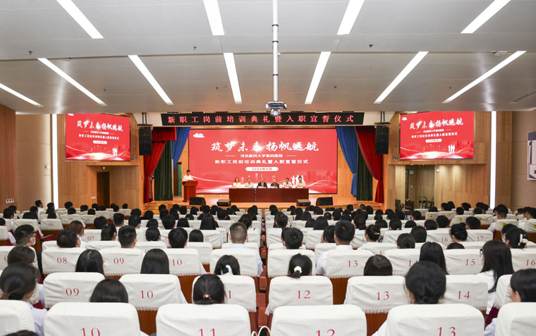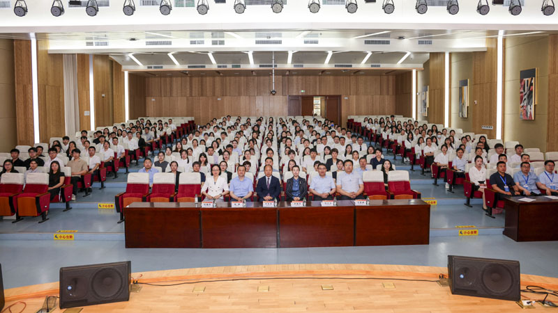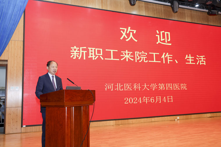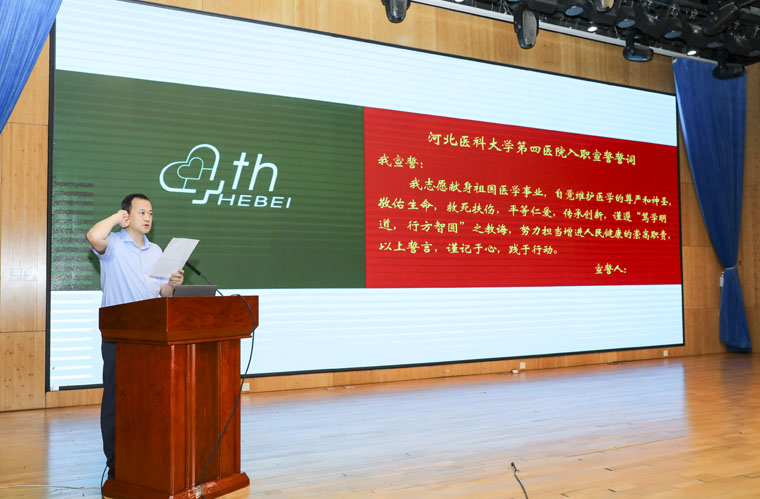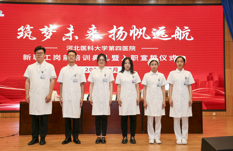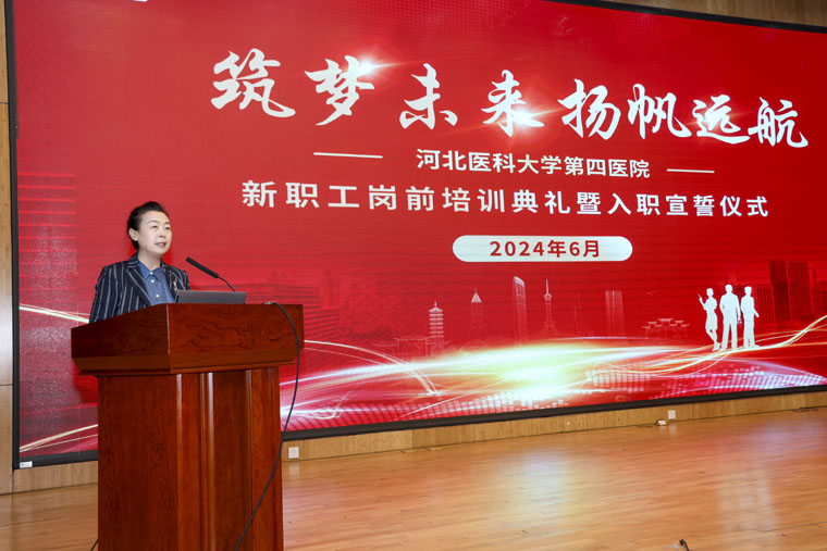 在新医技病房楼报告厅为228名新职工进行岗前培训。党委书记单保恩,党委副书记、纪委书记李晓玲,副院长赵群、何宏涛、田晓玲、马景涛及各职能部门负责人参加培训开幕式,人事处处长韩国军主持活动。