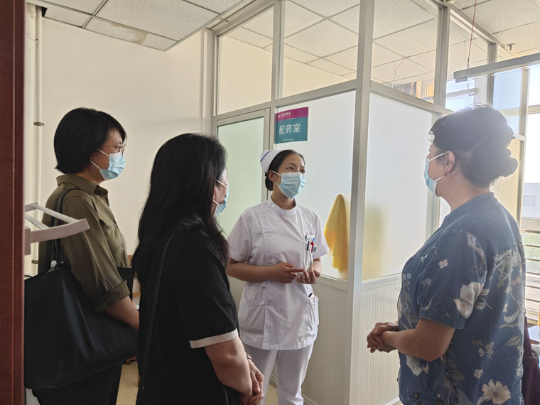 血液内科护士段亦娇详细讲解了PICC的植入与拔除流程,重点突出了其中的难点和关键环节。乳腺中心护士李月锋对PICC维护流程进行了规范化培训。在讨论答疑环节,康琳主任护师、王建新护士长、段亦娇护士和李月锋护士耐心解答并指导了望都县医院在静脉治疗中遇到的难题。随后,团队专家在望都县肿瘤内科护士长刘丽的引导下开展临床实地调研,并根据望都县的临床现状,提出了静脉通路开展与实施的合理化建议,受到了广泛称赞。