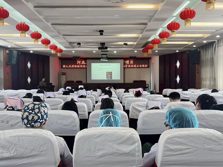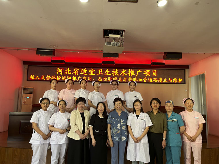 静脉治疗护理专家团队赴保定市望都县医院开展“植入式静脉输液港推广应用、恶性肿瘤患者静脉血管通路建立与维护”适宜卫生技术推广项目,县医院医护人员近百人参加了培训。