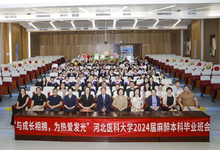 骄阳似火,盛夏蝉鸣,火热的季节勾勒出一幅幅校园美景,迎来了一年一度的毕业季。6月20日,河北医科大学2024届麻醉本科毕业主题班会——“与成长相拥,为热爱发光”在我院新医技病房报告厅举行。院党委书记单保恩、副院长田晓玲、教务处处长张曼,河北医科大学麻醉学系各教学医院麻醉科负责人“三个老师”代表、部分带教老师及2019级全体学生约130余人参加会议由麻醉学系贾慧群主任主持。