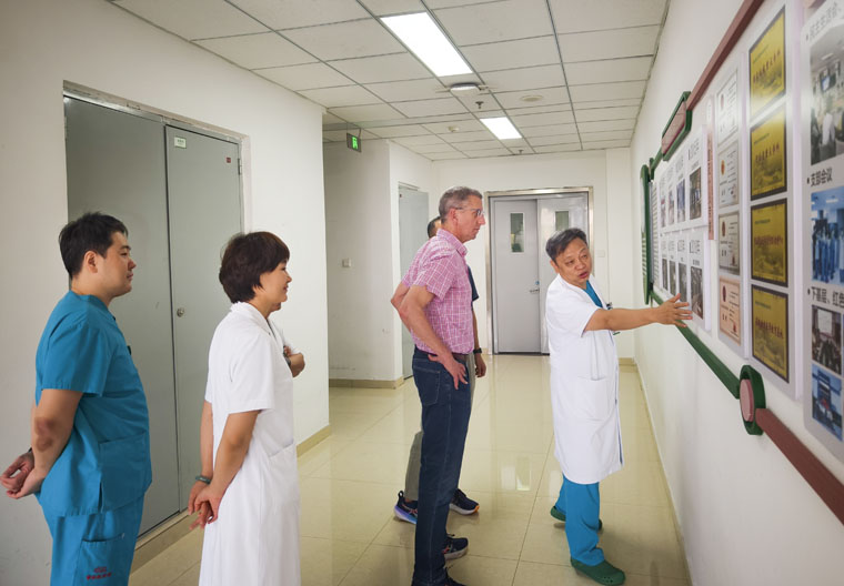 交流现场,胡振杰主任介绍了科室发展情况,并与蔡斯教授深入交流了中新两国重症医学的发展历程。随后,蔡斯教授一行参观了果冻传媒
