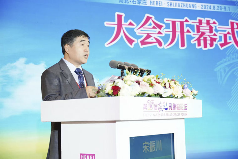 乳腺癌诊治工作的大力支持表示感谢。他指出,本次学术会议的召开体现了河北省乳腺领域各位同道积极进取、不畏艰辛的学术精神。他衷心希望全体参会的专家学者进一步加强沟通,推动我省乳腺肿瘤领域的发展。