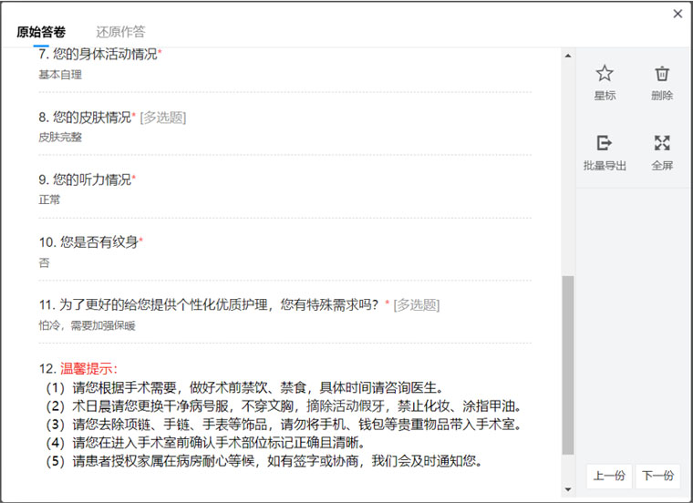 东院手术室利用互联网平台建设了一个集健康宣教、信息交流、需求反馈于一体的“互联网+”综合服务平台。患者可以通过手机获取规范、统一、专业的健康宣教内容。同时,平台还设置了在线留言反馈等功能,患者可以向医护人员表达自我需求,手术室责任护士获取相关信息后,经充分讨论研究,制定个性化的人文护理方案。平台不仅涵盖了术前患者生理层面的准备内容,更能深入到心理层面,在传递健康知识的同时,解答着患者的每一个疑问,有效缓解紧张、焦虑等情绪,提高了患者对手术护理工作的信任感和配合度,帮助手术护理方案的制定更加精准,更加贴心。