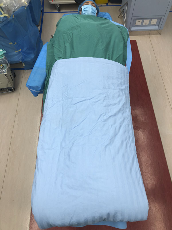 在手术室内,为进一步满足病人的保暖需求,东院手术室对传统的保暖被进行创新设计,采用了“一分为二”的设计思路,将原本厚重的被子改造成两件轻便且易于操作的小被子。当患者平躺在手术床上,可以根据手术部位的不同和患者的需求,灵活调整保暖措施,采用不同的盖被方法。这样的改变,不仅简化了手术中的操作,还有效预防了非计划性低体温和压力性损伤等并发症的发生。