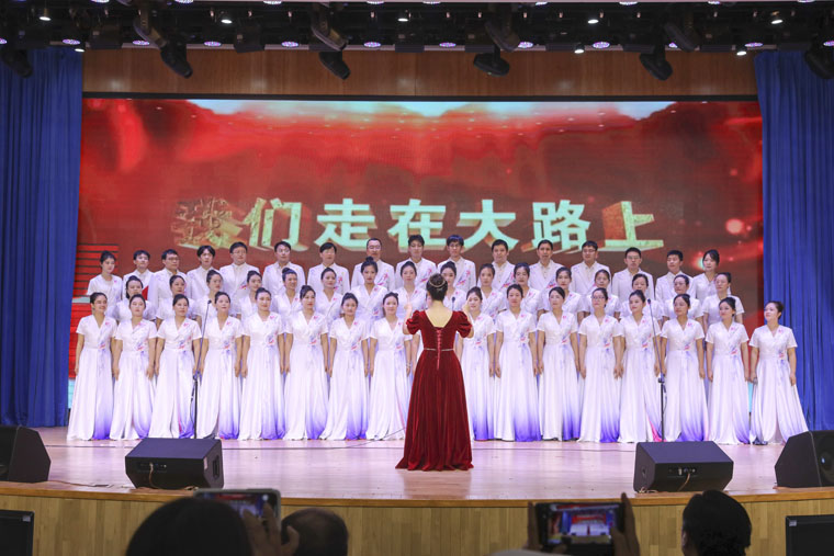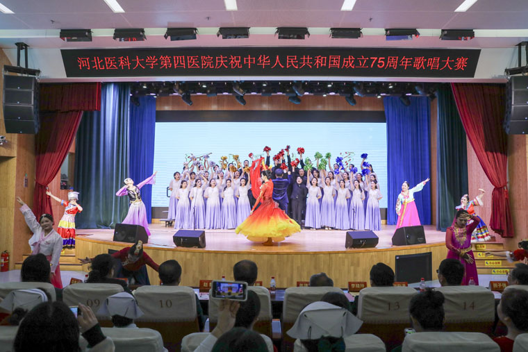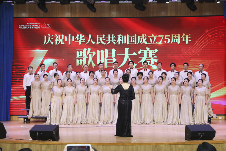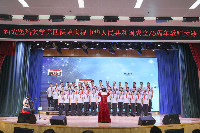 第二党总支二队《今天是你的生日》作为开场曲目,犹如一股暖流,瞬间涌入每个人的心田,《没有共产党就没有新中国》表达了跟党走的坚定信念。第二党总支一队《弹起我心爱的土琵琶》旋律悠扬,《我们走在大路上》豪迈大气。第五党总支二队《不忘初心》唱出了对祖国的豪情自信,《喀秋莎》激情高昂。第四党总支一队《祖国在召唤》铿锵有力、震撼人心,《河北医大四院院歌》唱出了我院的初心使命和伟大梦想,大家更加深切感受到作为一名医务人员的担当。第五党总支一队《星辰大海》唱出了乘风破浪的勇气,《美丽中国》让大家感受到祖国的壮丽和强大。