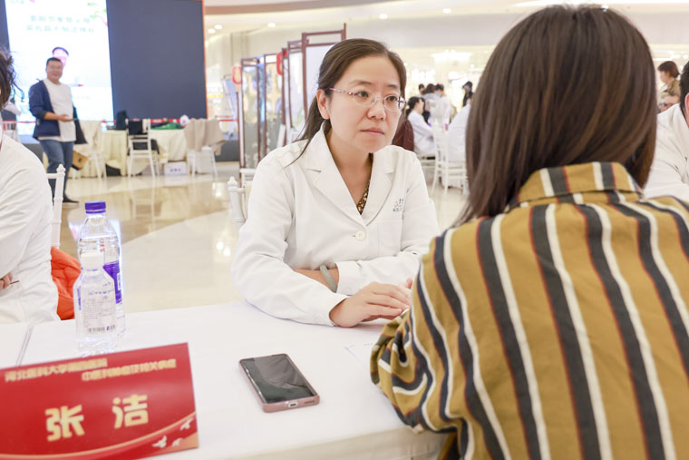 中医科刘淑刚副主任医师、张洁主治医师在现场为广大市民朋友“把脉问诊”,提供健康咨询服务。