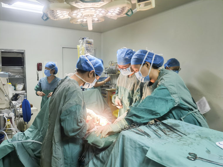 手术当日,东院麻醉科主任贾丽团队做好生命体征监测与容量管理准备;东院手术室李淑军护士长团队备齐所有手术器械,输血科紧密沟通确保血液供应。同时,放射介入科武中林副主任医师待命,准备随时进行介入治疗以止血。