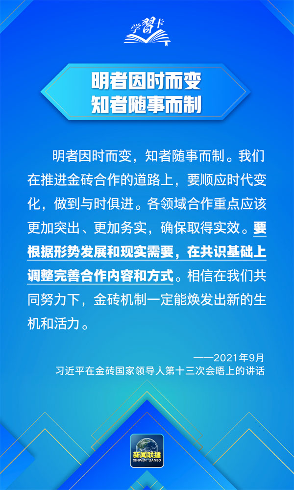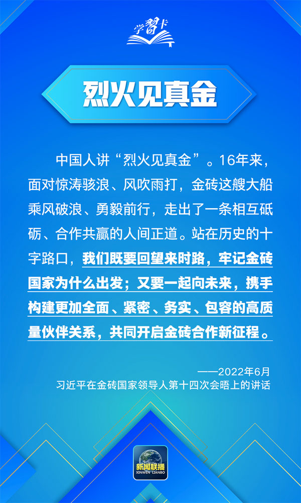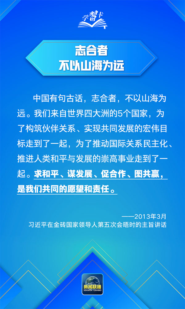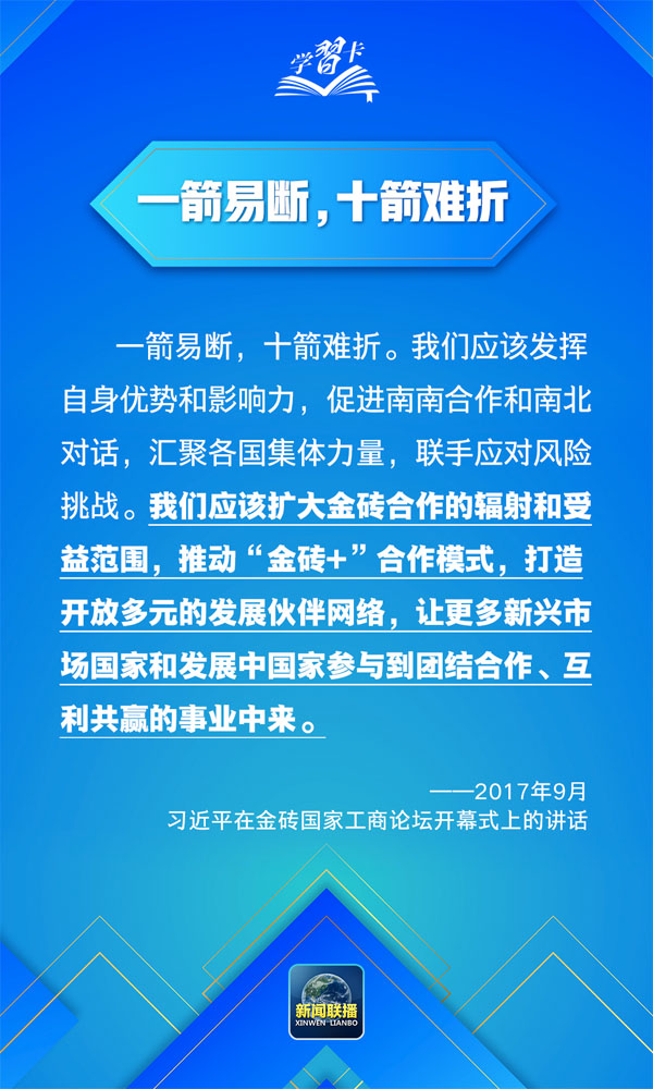关于“金砖”,习近平主席曾在不同场合多次引经据典,有许多精彩论述。金砖国家领导人会晤在即,让我们重温习近平主席的话语,一起学习↓↓↓