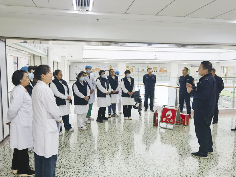患者、职工和财产的安全,强化门诊医务人员消防安全意识,近日,围绕冬季消防安全知识和实地操作等内容,门诊部联合保卫处开展了培训和演练。