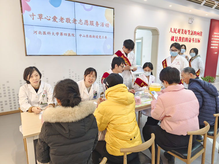 志愿者分工协作,针对老年人常见的高血压、高血糖、高血脂等疾病症状,神经内科李晨曦主治医师、内分泌科范炳格主治医师分别就心脑血管疾病的预防康复、血糖的监测用药等进行了重点提示和解答,对于身体不适的居民给出就医指导意见,并叮嘱老人们关注身体状况,定期体检。医学生们积极协助测量血压、血糖,根据测量结果告知对方健康管理的注意事项,就“三减三健”(减盐、减油、减糖,健康体重、健康口腔、健康骨骼)保健知识进行了宣传讲解。