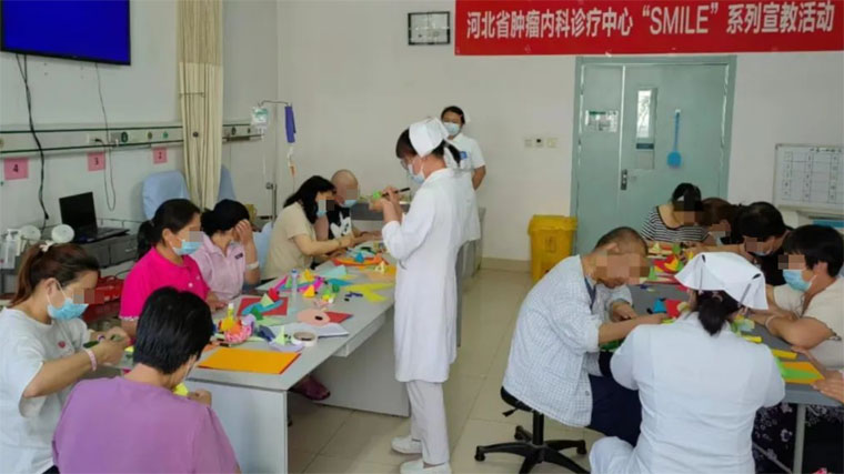科室深入探索多种心理治疗模式,成立了暖阳工作室,采用音乐、绘画、手工制作等多种艺术形式进行干预治疗,深化与患者及家属的心理沟通,帮助患者在抗癌道路上获得更多“温暖陪伴”和“人文支持”,增强战胜疾病的信心。不同模块的宣教培训每年有序进行,效果显著,年受益者达万人以上。