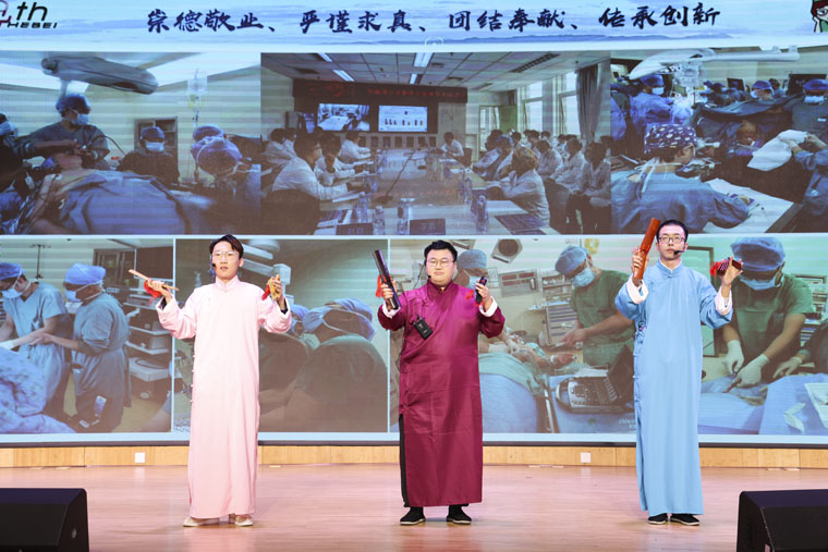 在本部新医技病房楼报告厅举办了2025年迎新春联欢会。六个党总支悉心筹备、倾情呈现,14个精彩节目交织成一场视听盛宴,超200名职工热情参与演出。全体院领导,离退休老领导、老前辈与广大职工欢聚一堂,共迎蛇年新春。线上平台同步进行直播,点击量近40万人次,收获广泛好评。