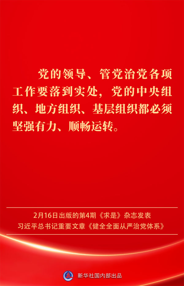 2月16日出版的第4期《求是》杂志发表习近平总书记重要文章《健全全面从严治党体系》。如何进一步健全要素齐全、功能完备、科学规范、运行高效的全面从严治党体系?习近平总书记阐明要旨——