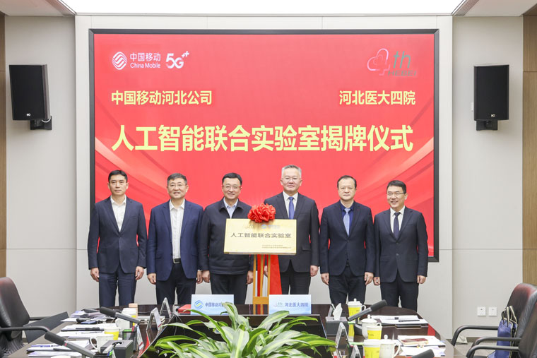 随后,常务副院长何宏涛与河北移动党委副书记刘克飞代表双方签署协议,副院长赵群与副总经理杨朝晖为人工智能联合实验室进行揭牌,联合实验室的成立将进一步推动技术创新与临床需求的精准对接,加速科研成果转化落地。