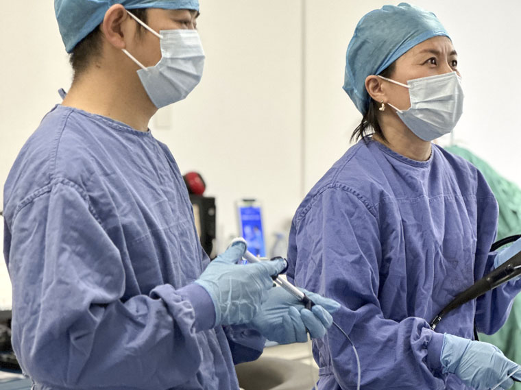 熟练掌握各种手术器械是“蓝”护士的看家本领,我们充分了解每款手术器械的型号、使用方法,在术中我们要预见性地知道医生的下一步操作,想医生之所想。当看到病变创面喷涌的鲜血喷射时,我们会化身为医生的“第三只眼”,紧盯屏幕,协助医生找出血位置,精准快速夹住血管。