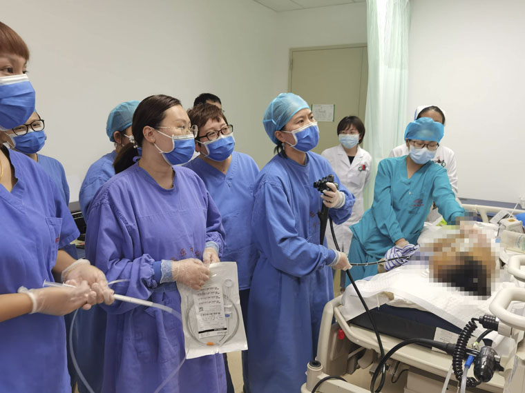 急诊内镜往往都是一些紧急的病情,消化道大出血最为常见,耽误一分,患者很可能就会有十分的生命危险。食管异物也是常见的急症之一,如误食鱼刺、枣核、骨头、假牙等,取异物风险很大,很可能造成血管的大出血。每一次抢救都是与死神在拉扯,值得欣慰的是,我们常常是获胜的一方,有时一干就到了深夜,医院就是家,倒头就睡,第二天继续投入到诊疗工作中。