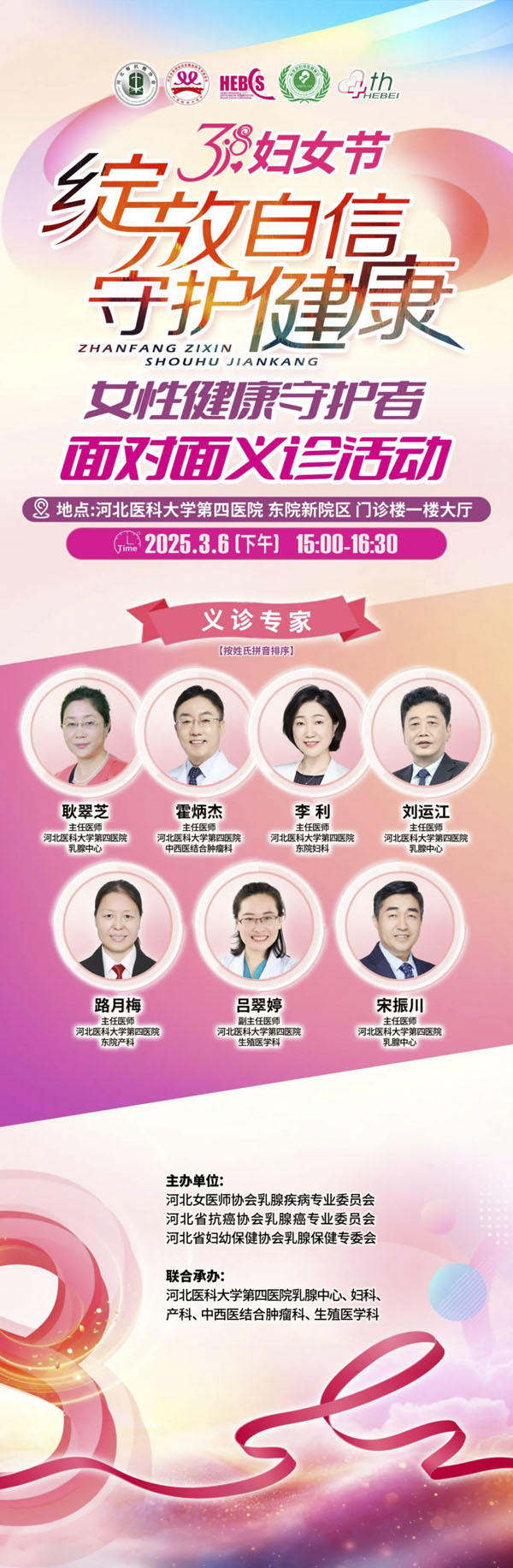 东院区将开展“女性健康守护者”面对面义诊活动,乳腺外科、东院妇科、东院产科、中西医结合肿瘤科及生殖医学科等多学科医学专家携手组建了专业的医疗团队。届时,他们将为广大女性提供全面、细致且专业化的公益健康咨询服务,旨在普及科学健康知识,增强女性健康意识,切实为女性朋友带来温暖与关怀。