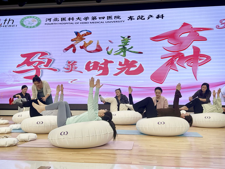 在经验分享环节,特别邀请产后康复成功的何菲女士分享经验,并展示个性化康复笔记,她总结的"科学运动+专业指导+家庭支持"康复公式引发共鸣。郑芮医师通过《女性整体康复》理论讲解,结合法国WAFF运动示范,指导孕产妇掌握孕期体态管理技巧,准妈妈们在专业指导下完成系列舒缓训练。