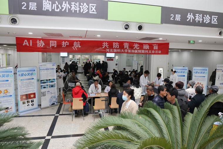 为响应第18个世界青光眼周号召,提升公众眼病防治意识,3月14日,眼科在本部门诊大厅举办了“AI协同护航 共防青光眼盲”主题义诊活动。本次活动集科普宣教、专业筛查、专家问诊于一体,累计服务群众200余人次,发放科普资料200余份,为高危人群搭建了便捷的眼健康“绿色通道”。