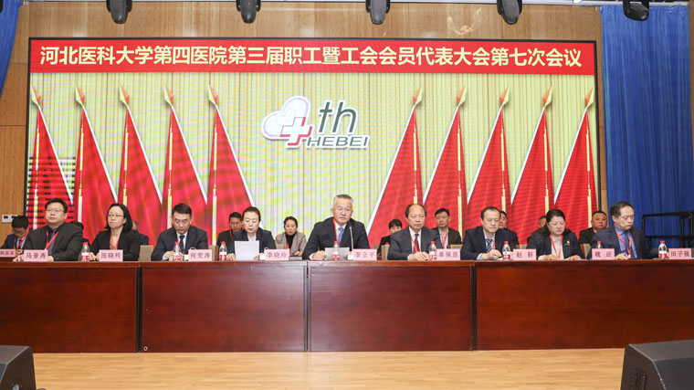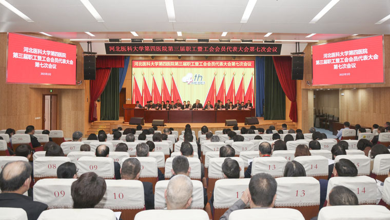 第三届职工暨工会会员代表大会第七次会议在本部院区新医技病房楼报告厅召开。党委书记李立平讲话,党委副书记、纪委书记李晓玲主持会议,常务副院长何宏涛作《医院工作报告》。老领导单保恩,院领导赵群、魏迎、田晓玲、田子强、马景涛等出席大会。