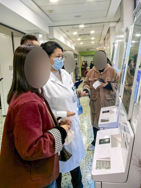 为确保改革平稳过渡,信息管理处、门诊部、财务处等科室成立专项工作组,对信息系统进行升级调整。门诊部第一时间在门诊张贴了指引牌和流程示意图。今日上午,总会计师魏迎带领门诊部、信息管理处及第33党支部志愿导诊人员等,在门诊大厅耐心细致地指导患者运用全新的就诊流程。口腔科、生殖医学科等门诊科室也积极行动起来,组织本科室工作人员协助维持就诊秩序,手把手指导患者使用自助设备。