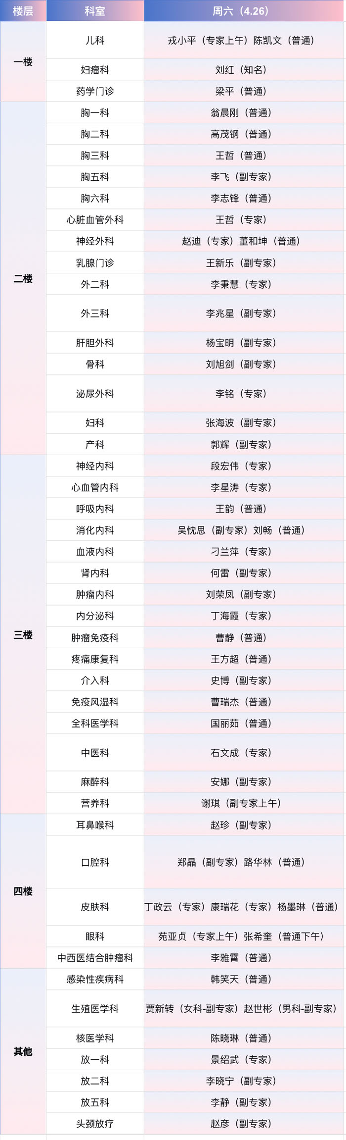 注:具体以实际出诊为准。
