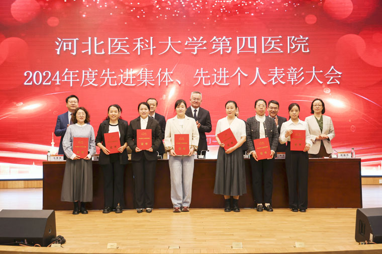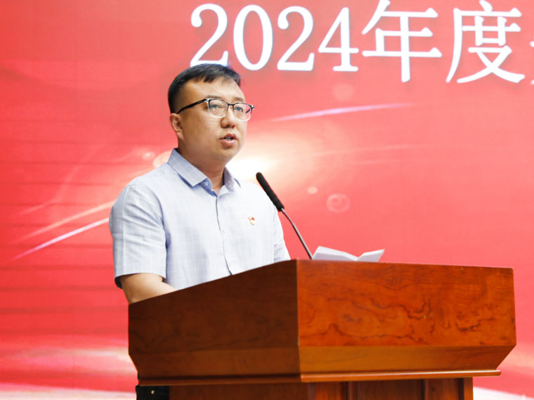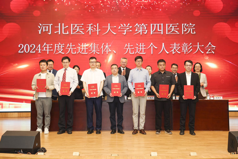 在新医技病房楼报告厅举行2024年度先进集体、先进个人表彰大会,全体在院领导,临床医技科室医疗、护理负责人,教研室负责人、行政党务中层干部、党总支书记、党支部书记、民主党派负责人、获奖集体代表及获奖个人参加会议。党委书记李立平讲话,常务副院长何宏涛主持会议。