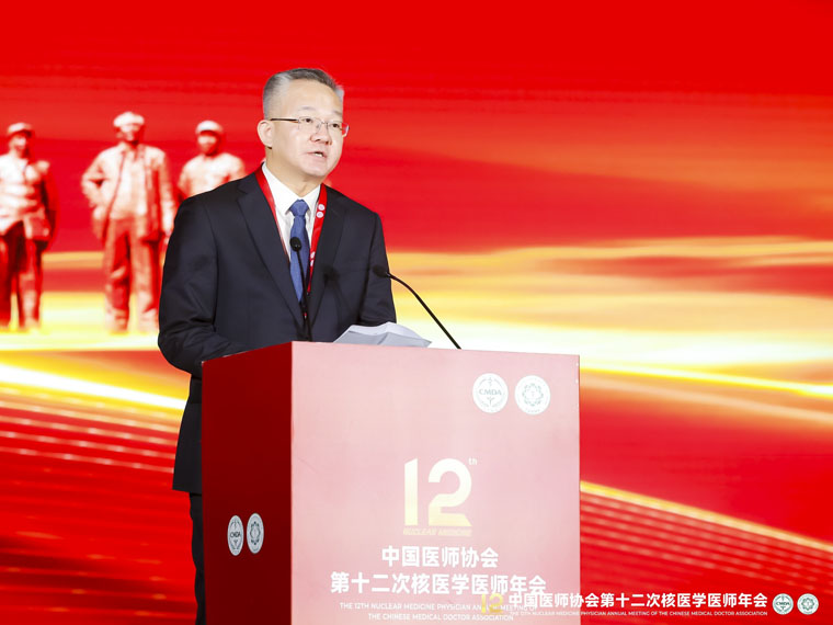 在学科建设、人才培养、科研创新等方面取得了显著成绩,多个学科在国内外享有较高的声誉。特别是核医学科,经过核医人的努力奋斗,已经发展成为集医疗、教学、科研为一体的河北省重点学科。他强调,核医学作为一门重要的医学学科,在疾病精准诊断与核素治疗中具有不可替代的作用。随着科技进步和健康需求提升,核医学正面临前所未有的发展机遇。李立平书记勉励广大从业者牢记使命、勇于担当,持续提升专业素养与创新能力,全力推动核医学事业高质量发展。