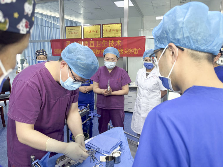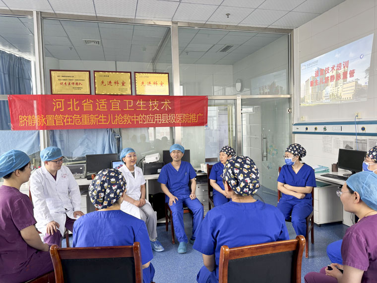 儿科主任刁玉巧教授的带领下,张文浩主治医师、陈彦主治医师、王瑛玮护士长等儿科专家团队一行前往故城县医院新生儿科,开展了河北省县级综合医院适宜技术推广项目——脐静脉置管在危重新生儿抢救中的应用,旨在进一步提升基层医院危重新生儿救治能力。