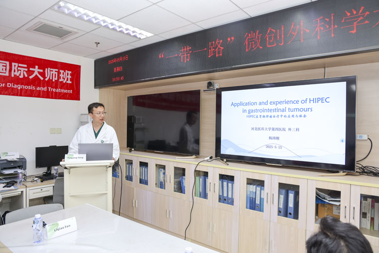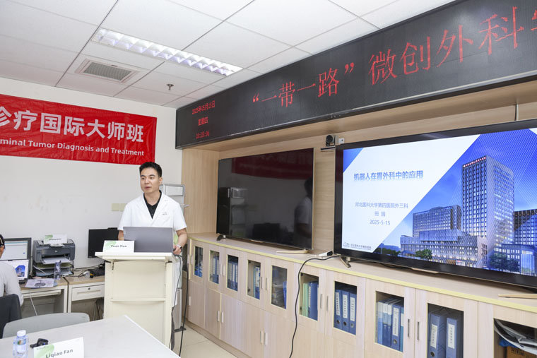 外三科承办的“一带一路”微创外科学术交流暨第六届普外科胃肠及腹腔肿瘤诊疗国际培训班在本部院区举行,来自越南、伊朗、斯里兰卡等国的16位胃肠外科专家参与活动。党委书记李立平,河北省肿瘤研究所常务副所长、副院长赵群,常务副院长何宏涛等出席。活动通过学术研讨、技术创新展示及手术演示交流等方式,进一步推动了医院与“一带一路”沿线国家的医学合作。