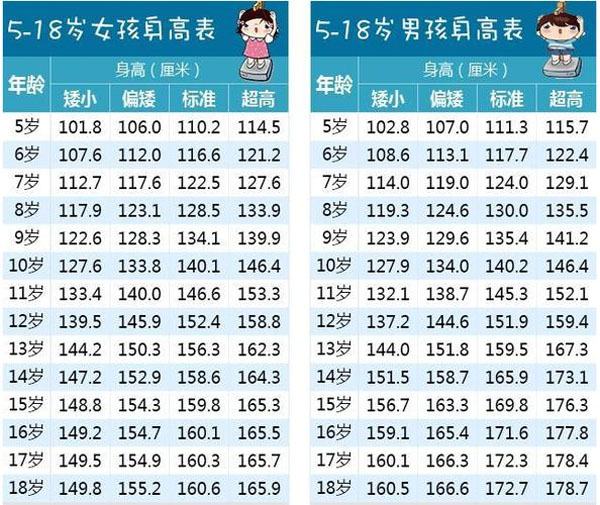 5-16岁身高不理想及性发育过早的儿童(参照所示身高对照表,身高在偏矮以下的孩子)。