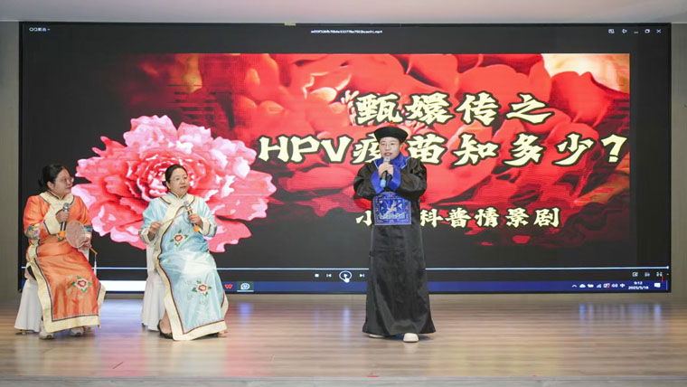 妇瘤科张欢欢、代红红、李聪聪三人以幽默又兼具娱乐效果的形式生动演绎宫颈癌“三级预防”措施之一——接种HPV疫苗,现场传达了疾病预防理念,获得评委及观众的一致好评。