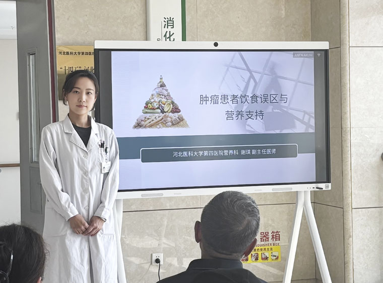 5月19日,谢琪副主任医师走进消化内科一病区,以“肿瘤患者的饮食与营养误区”为题开展讲座,结合临床案例解析“完全素食影响免疫力”“过度依赖保健品”等常见误区,强调放化疗期、康复期不同阶段的营养支持要点,指导患者通过均衡膳食搭配增强体质。现场,通过案例分析和现场答疑,引导患者及家属摒弃错误观念,掌握科学饮食方法,帮助肿瘤患者通过合理营养摄入增强体质、改善预后。