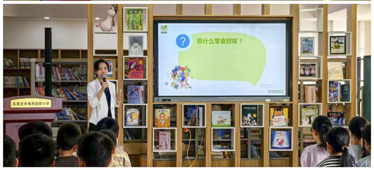 保利启新小学的"小零食、大智慧"讲座中,谢琪副主任医师通过图片对比展示高糖高脂零食的危害,教孩子们看食品标签选择健康零食,轻松活泼的授课方式让孩子们全程兴致盎然。