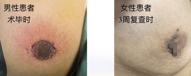 与常规胸部微创手术切口相比,经隐匿微单孔(乳晕旁切口)技术展现出显著优势:其将手术切口巧妙隐藏于乳晕边缘的天然色素沉着区,利用皮肤纹理褶皱实现术后瘢痕的高度隐蔽,极大满足了患者尤其是女性对美观的需求,有效缓解因切口外观带来的心理压力;同时,单孔入路在精准避开乳腺腺体的基础上,避免了多切口对胸壁肌肉和神经的损伤,显著降低术后疼痛程度与持续时间,使患者能更快恢复正常活动;创伤小、恢复快的特点更直接缩短了住院周期,有效减轻了患者经济负担。这种集美容效果、微创优势与社会价值于一体的术式,为胸部疾病诊疗提供了更具人文关怀的解决方案。