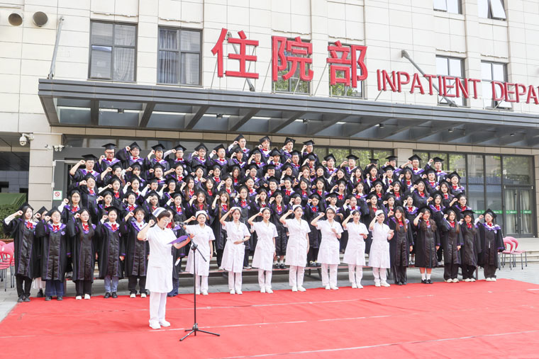 随后,护理学院、护理部、护理教学办公室的前辈老师为毕业生代表庄严授帽。“余谨以至诚宣誓,终身纯洁,忠贞职守。勿为有损之事……”河北医科大学护理学院院长张瑞丽带领全体同学重温南丁格尔誓言,同学们以坚定的声音和虔诚的态度,庄严宣告对护理职业的神圣承诺与坚定信念。