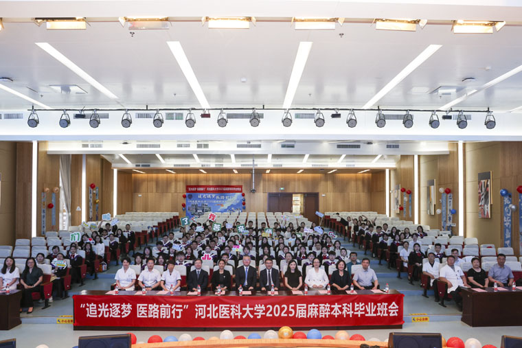 举行了2025届麻醉学专业本科生毕业活动。全体在院领导、麻醉学系各医院主任、教师代表及教务处全体老师齐聚一堂,为毕业生韶华加冕,助医学梦想启航。