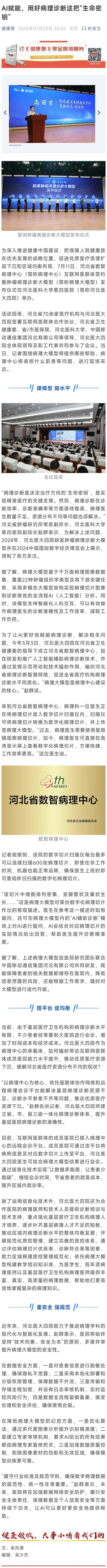 权威关注!河北日报+健康报深度追踪果冻传媒 肿瘤病理诊断大模型:为肿瘤诊疗装上“慧眼”